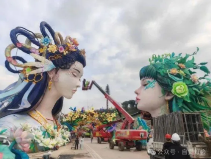 創(chuàng)作融合傳統(tǒng)工藝與現(xiàn)代科技——設(shè)計師首創(chuàng)作具有中國韻味的女性形象雛形,燈會主辦方國投集團華薈公司設(shè)計團隊結(jié)合影視CG美學(xué)對3D模型的臉型、五官及發(fā)型反復(fù)優(yōu)化,確保既符合神話角色特征又契合現(xiàn)代審美。百余名工匠以傳統(tǒng)絲架造型結(jié)合數(shù)字建模技術(shù),歷時近兩月完成立體轉(zhuǎn)化。備受爭議的制作難點集中于巨型頭像的妝容呈現(xiàn):團隊從700余張妝造圖中精選設(shè)計方案,因頭像規(guī)模導(dǎo)致的透視變形、布匹裱膚材質(zhì)限制,整個制燈過程僅有一次上妝機會且無法修改,使妝容難度遠超造型階段。美工團隊?wèi){借極致匠心,依托三臺工程車高空協(xié)作,耗時7天以丙烯顏料精準(zhǔn)完成零容錯繪制,最終成就展現(xiàn)自貢彩燈頂尖工藝水準(zhǔn)的典范之作。追求。
