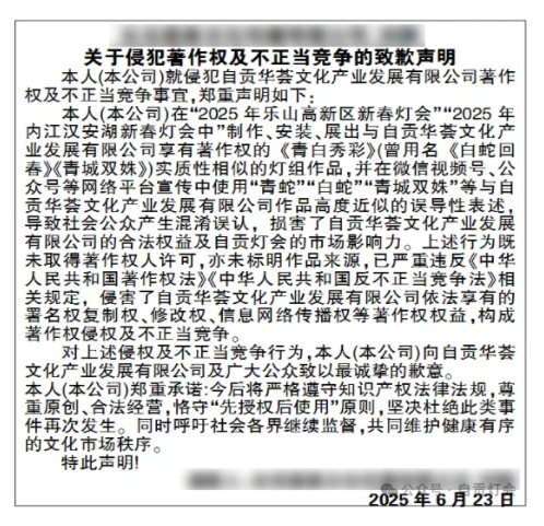 然而,原創(chuàng)成果的保護面臨嚴(yán)峻挑戰(zhàn)。抄襲、模仿等侵權(quán)行為,不僅是對創(chuàng)作者勞動成果的粗暴掠奪,更是對文化創(chuàng)新生態(tài)的嚴(yán)重破壞:面對外界的借鑒與潛在的侵權(quán)行為,自貢燈會始終堅守原創(chuàng)初心,以堅定的姿態(tài)捍衛(wèi)彩燈文化的尊嚴(yán)。知識產(chǎn)權(quán)是文化創(chuàng)新的基石,只有保護好它,才能確保自貢燈會的持續(xù)繁榮與發(fā)展。為此,我們已建立完善的知識產(chǎn)權(quán)保護機制,對任何形式的抄襲行為保持高度警覺,并采取一切必要措施予以反制。