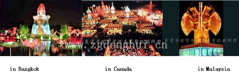 Zigong Colorful Lantern Festival Management Committee and Zigong Commerce Department constantly blaze new trails concerning the “Five Zigong Building Projects” and put forward the target of enhancing Zigong lantern cultural export. Through a series of way of getting policy support and raising funds from the upper level governments, all level governments aid Zigong lantern enterprises to "go abroad" and participate in the international market competition, expand cultural products and services exports, raise public awareness of Zigong lantern both home and abroad, and Zigong lantern industry has become bigger and stronger. Through all effort, the lantern enterprises in Zigong have been developing quickly. As of the third quarter of 2012, four companies have, respectively, held lantern shows in the United States, South Korea, Japan, and Netherlands and so on. The Ministry of Commerce, Central Propaganda Ministry, Ministry of Finance, Ministry of Culture, State Administration of Radio, Press and Publication jointly affirm Zigong lantern show as one of the key enterprises and key projects of 2011-2012 annual national cultural exports. Among them, the annual number of the export authorized reached up to eight enterprises and two projects from only one enterprise and one project in 2009-2010, which is twice as much in 2007-2010, accounting for 50% of the total in Sichuan Province.